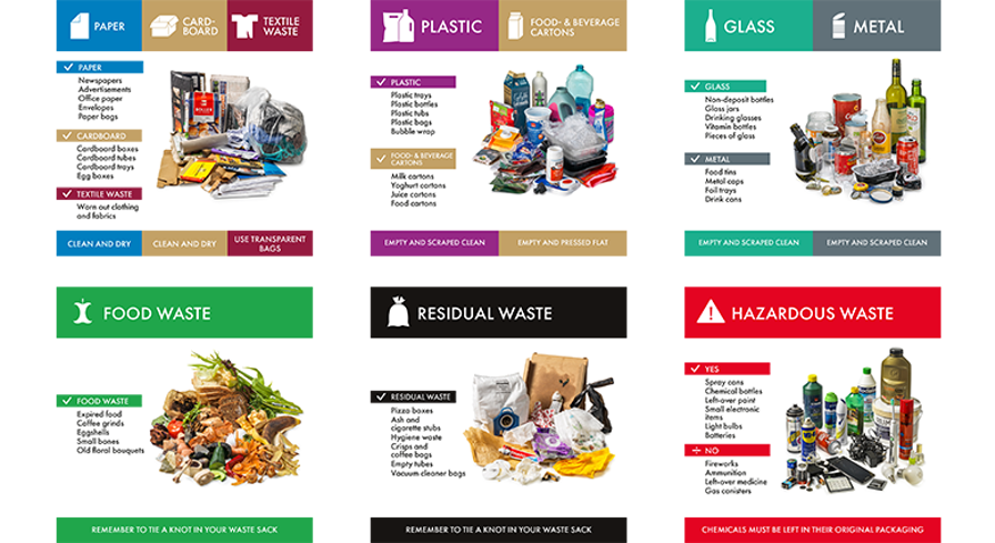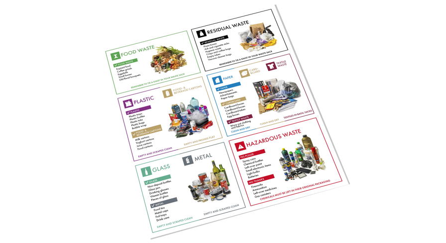 Download the sorting guides and put it on the waste bins for great waste sorting