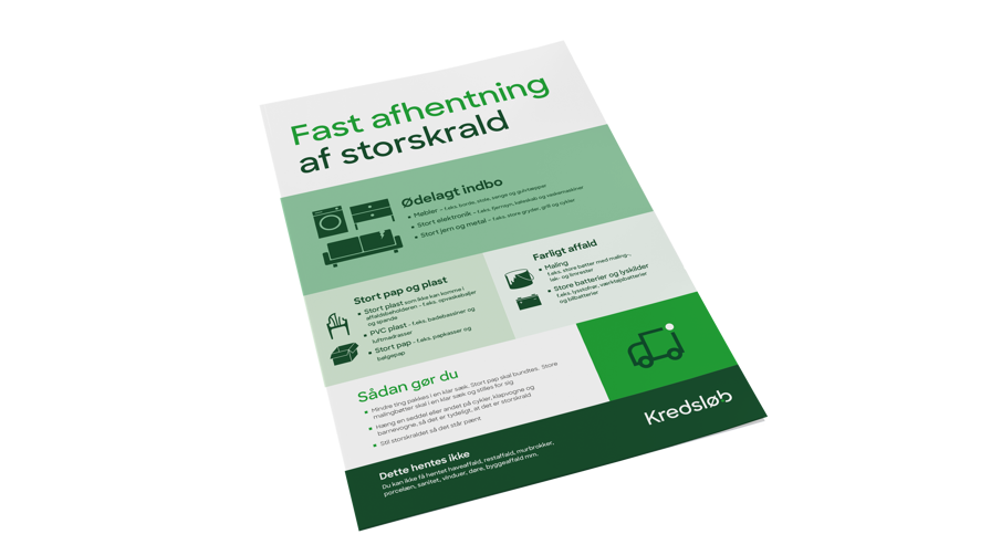 Har I fast afhentning af storskrald, kan du her downloade PDF med en A4, der beskriver, hvad der er storskrald, og hvordan beboerne skal gøre det klar til afhentning.
