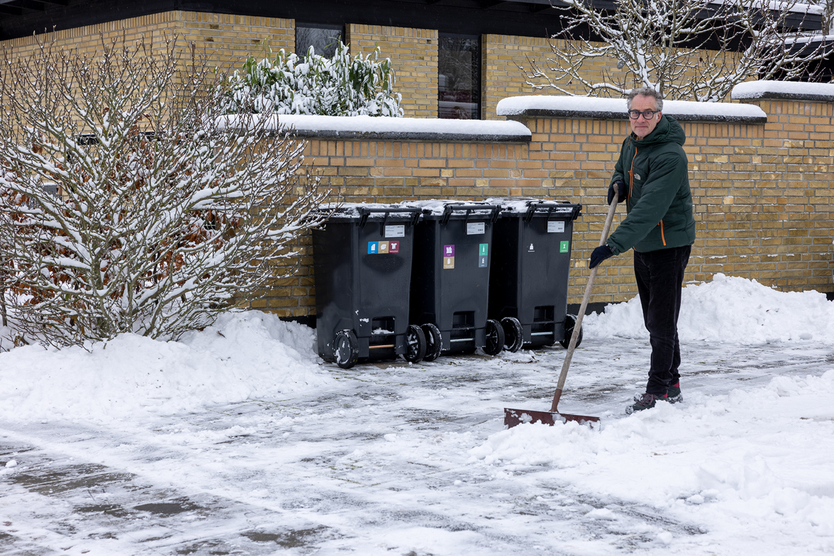Ryde sne og salte/gruse fra dine affaldsbeholdere og helt ud til vejen.