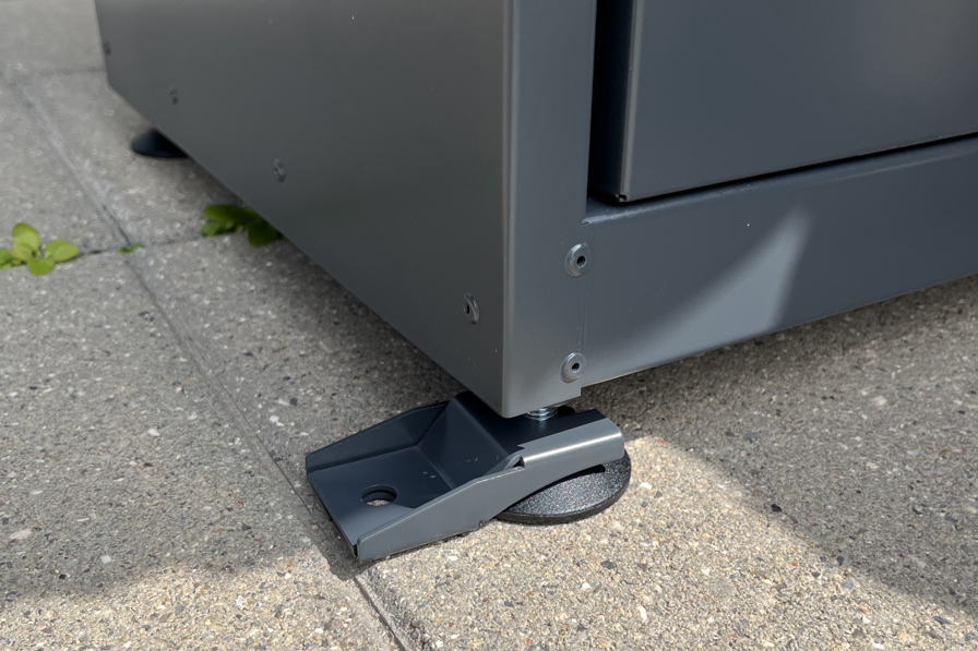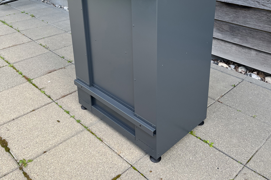 Skabene til farligt affald kommer i to forskellige størrelser med enten 4 eller 6 røde kasser.